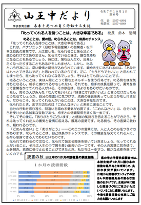 本日は第3回学校運営協議会が行われました。 委員の皆様が来校し、2時間目の授業を参観された後に学校の様子や課題等について話し合いが行われました。 2年3組:保健体育・・・バレーボールを行っていました。オーバーハンドパスやアンダーハンドパスを練習した後に楽しんでゲームを行っていました。 3年1組:数学・・・「三平方の定理の利用」 一辺の長さが10cmの正方形の高さや面積を求めていました。 3年2組:国語・・・夏草ーおくのほそ道(松尾芭蕉)「芭蕉の思いを想像しながら読もう」を目標に真剣に取り組んでいました。 3年3組:音楽・・・「信じる」という曲を各パートで分かれて練習をしていました。素敵な声が廊下中に響き渡っていました。 写真では撮れていませんが、 2年1組:社会・・・導入ではタブレットを使用したクイズ 2年2組:英語・・・導入でクリスマスにちなんだ洋楽を歌う やまびこ学級:畑で作業※校舎裏にいたのかな?探せませんでした。次回はぜひ! 生徒の皆さんが頑張っている様子をたくさん見てもらいました。 1年生は昨日から三日間「職場体験」で色々な事業所等で頑張っているようです。