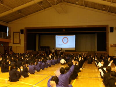 次に生徒会からは普段の授業をよりよくするために「授業態度アンケート」の結果発表がありました。