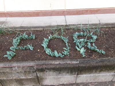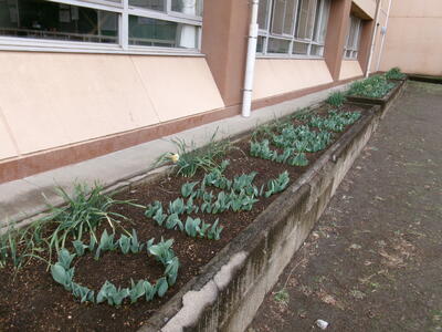 3年生の教室の前の花壇には、