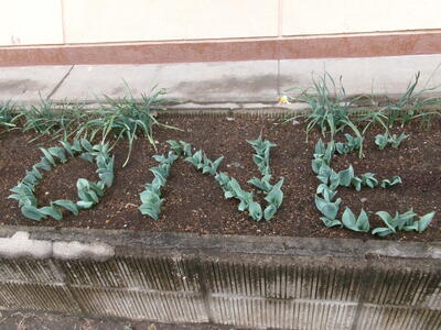 チューリップが植わっていますが、よーく見ると・・・
