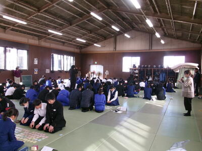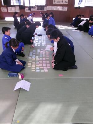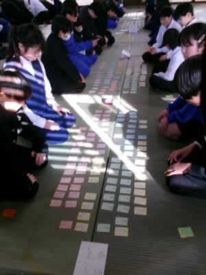2026.1.31(金) 1年生百人一首大会 投稿: 学校管理者 (01/30) カテゴリー: 今日の出来事 本日は1年生がチームを組んで百人一首大会を行いました。 どの会場も白熱していて、寒さが吹き飛ぶくらいの雰囲気で一生懸命な姿が見られました。 先生方も読み手として百人一首大会を盛り上げてくれました。 さて、みなさんの結果は・・・。 今回の百人一首大会でさらに「まるごとなかよく」なれたのではないでしょうか。 Tweet -