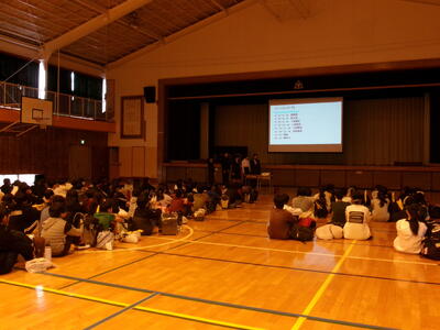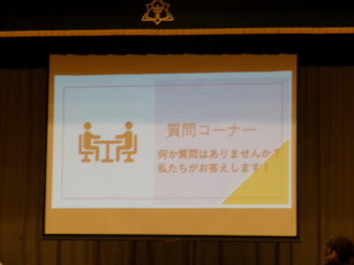 生徒会本部から学校生活に関しての説明があり、6年生はとても興味津々に話を聞いていました。
